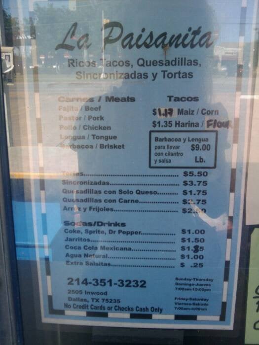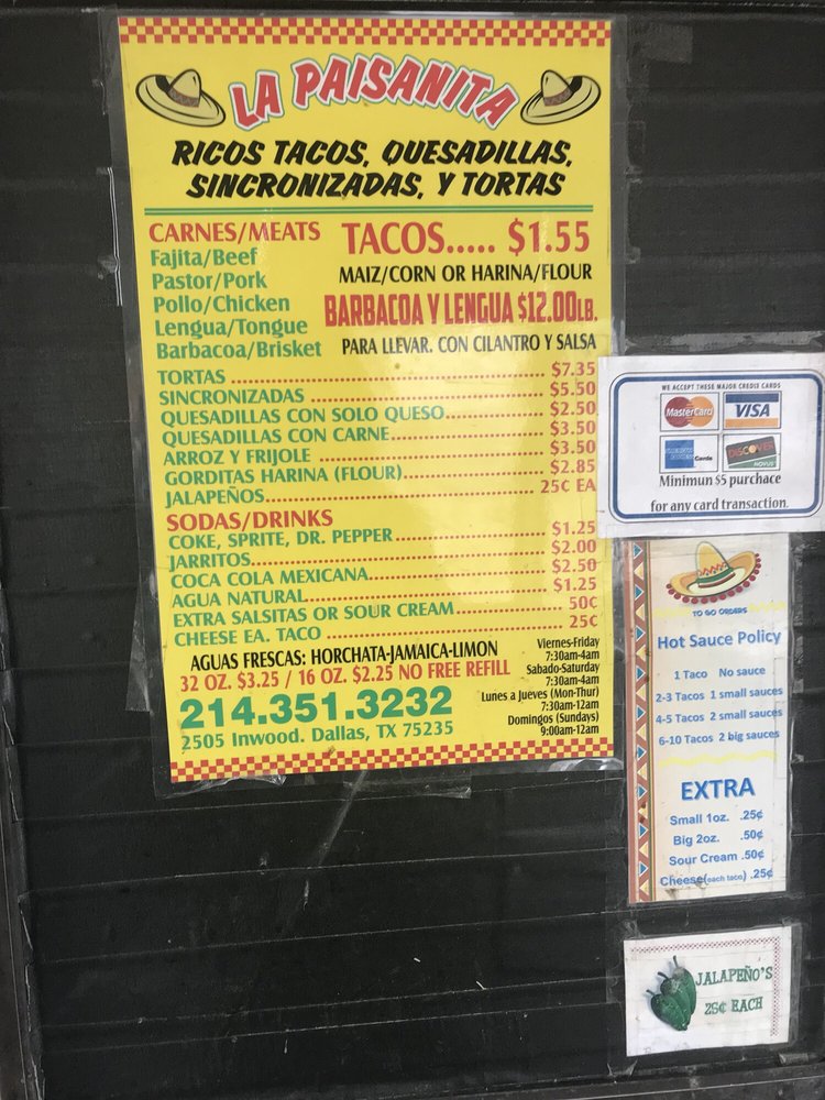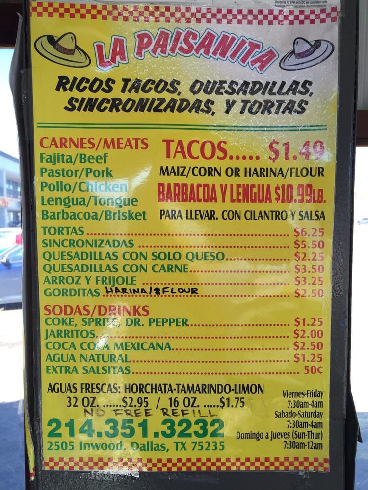 Taqueria La Paisanita offers a diverse menu of tacos, including Barbacoa Y Lengua and options for vegetarians. With an assortment of sodas and breakfast tacos, there is something for everyone. Customers praise the flavorful meats and the variety of salsas provided. The Barbacoa tacos are highlighted as a must-try, with perfectly seasoned and non-greasy meat. The establishment also offers speedy service, even during busy times. The pricing is reasonable, with $1.85 per taco and combo options available. The green salsa enhances the flavors, according to customers. Despite some minor critiques, such as dry beef, overall, the food at Taqueria La Paisanita is considered authentic and delicious by patrons. If you're craving tasty street tacos, this spot is worth a visit.